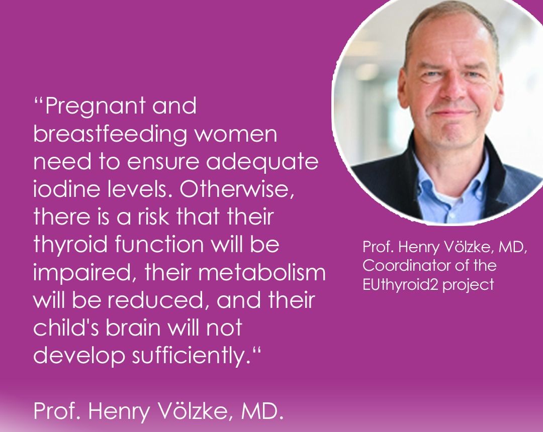 In an interview in the journal "Deutsche Hebammenzeitschrift", September 2025, Prof. Dr. Henry Völzke, EUthyroid2 Project Coordinator, University Medical Center Greifswald, Head of Study of Health in Pomerania (SHIP), and Chairman of the NAKO Research Network. highlighted that pregnant and breastfeeding women need to ensure adequate iodine levels; otherwise, there is a risk that their thyroid function will be impaired, their metabolism will be reduced, and their child's brain will not develop sufficiently.