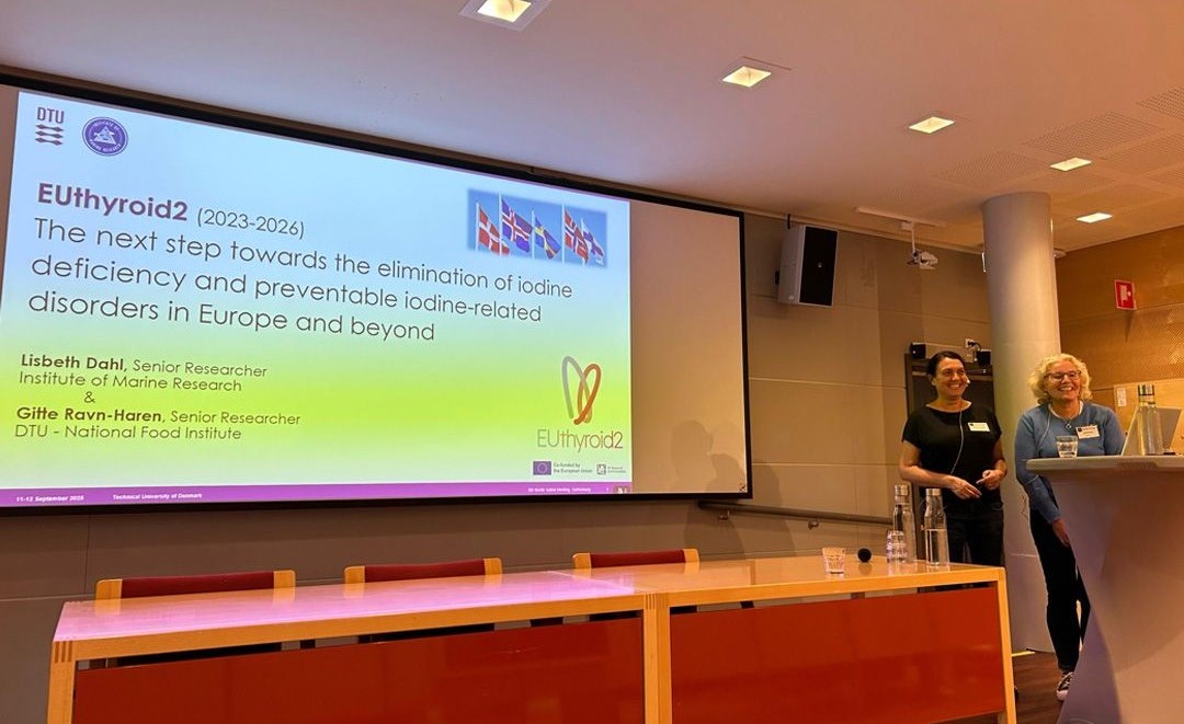 Two partners of EUthyroid2, Lisbeth Dahl, Nutritionist and Senior Scientist at the Institute of Marine Research, Bergen, Norway, and Gitte Ravn-Haren, Senior Researcher in the research group for risk-benefit at the National Food Institute, Technical University of Denmark, presented the EUthyroid2 interventions and initial results at the Nordic Iodine Conference in Gothenburg, Sweden, on September 11-12, 2025.